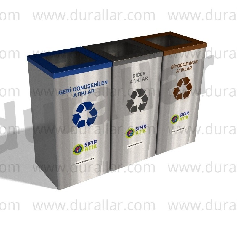 Gdk-3098 paslanmaz sıfır atık kutusu, 117 Litre kapasiteye sahip özel tasarım 3’lü geri dönüşüm kutusu setidir. Tamamen paslanmaz çelikten üretilmiş ve Sıfır Atık Projesi onaylıdır.