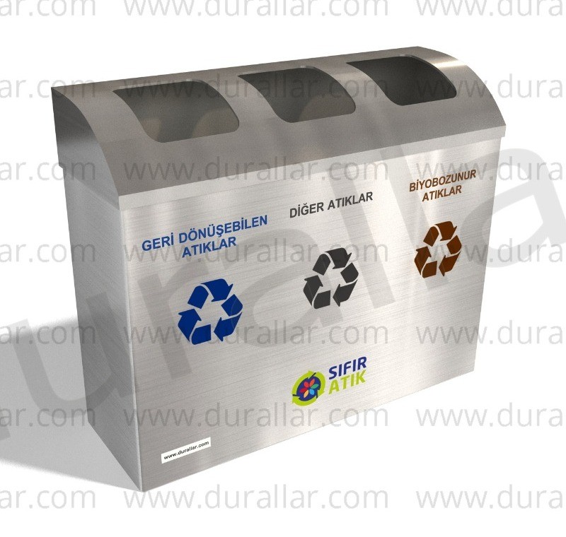 Gdk-3082 3’lü Sıfır Atık Kovaları ile 162 Litre kapasite, dayanıklı DKP saç ve 430 kalite paslanmaz çelik ile çevre dostu geri dönüşüm çözümleri.