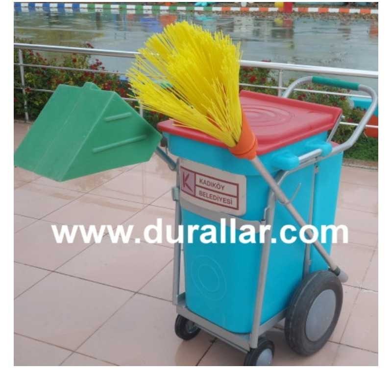 90 Lt çöp toplama arabası belediye, otel, hastane, tatil köyü, fabrika gibi alanlarda iç mekan çöp toplama hizmetlerinde kullanılmaktadır.Çöp kovaları kırılmaz ve yanmaz özelliktedir.Faraş, süpürge ve kürek fiyata dahil değildir.