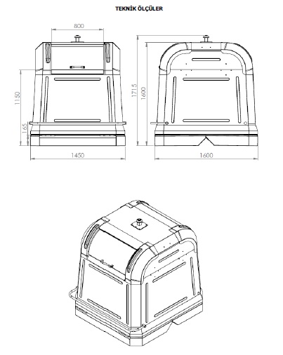 16.Alt kapak sacları 3 mm kalınlığında TS EN ISO 1461 standartlarında sıcak daldırma galvaniz kaplı olacaktır. Ayrıca sıvı atıkları 330-360 Litre kapasitede taşıyabilecek 165 mm derinliğinde olacak şekilde tasarımı yapılacaktır.